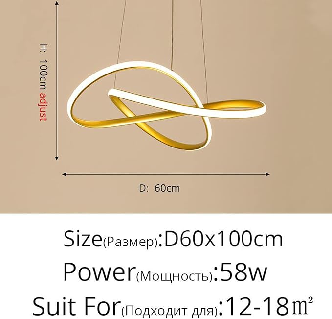 Cette suspension LED en forme d'infini allie élégance géométrique et technologie économe. Son design épuré en aluminium laqué or et son câble réglable (jusqu'à 100 cm) en font une pièce maîtresse adaptable à tous les plafonds. Avec sa LED intégrée 36W (blanc/blanc chaud/Jour) et sa télécommande, personnalisez l'ambiance de votre salon, chambre ou salle à manger en un clic.